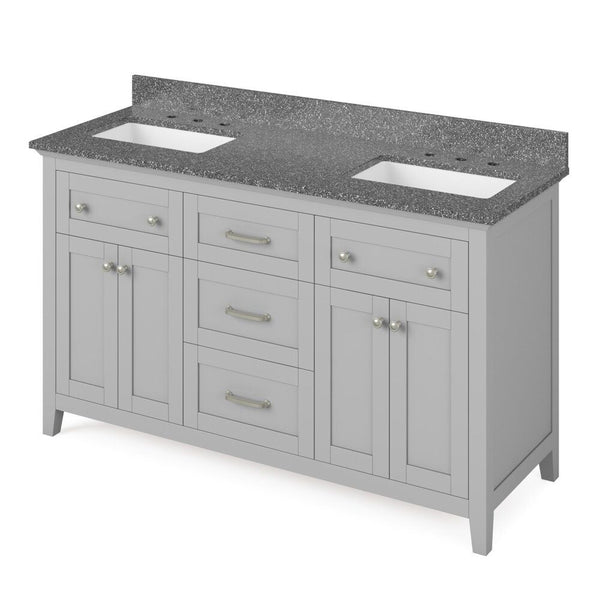 Chatham Transitional Grey 60" Double Sink Vanity with Boulder Cultured Marble Top | VKITCHA60GRBOR