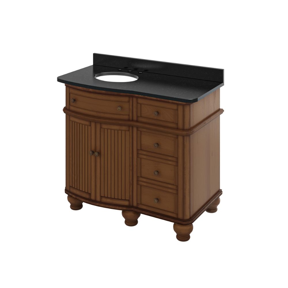 Details of the 48" Walnut Compton Vanity, Compton-only Black Granite Vanity Top, undermount oval bowl by Jeffrey Alexander | VKITCOM48WABGO