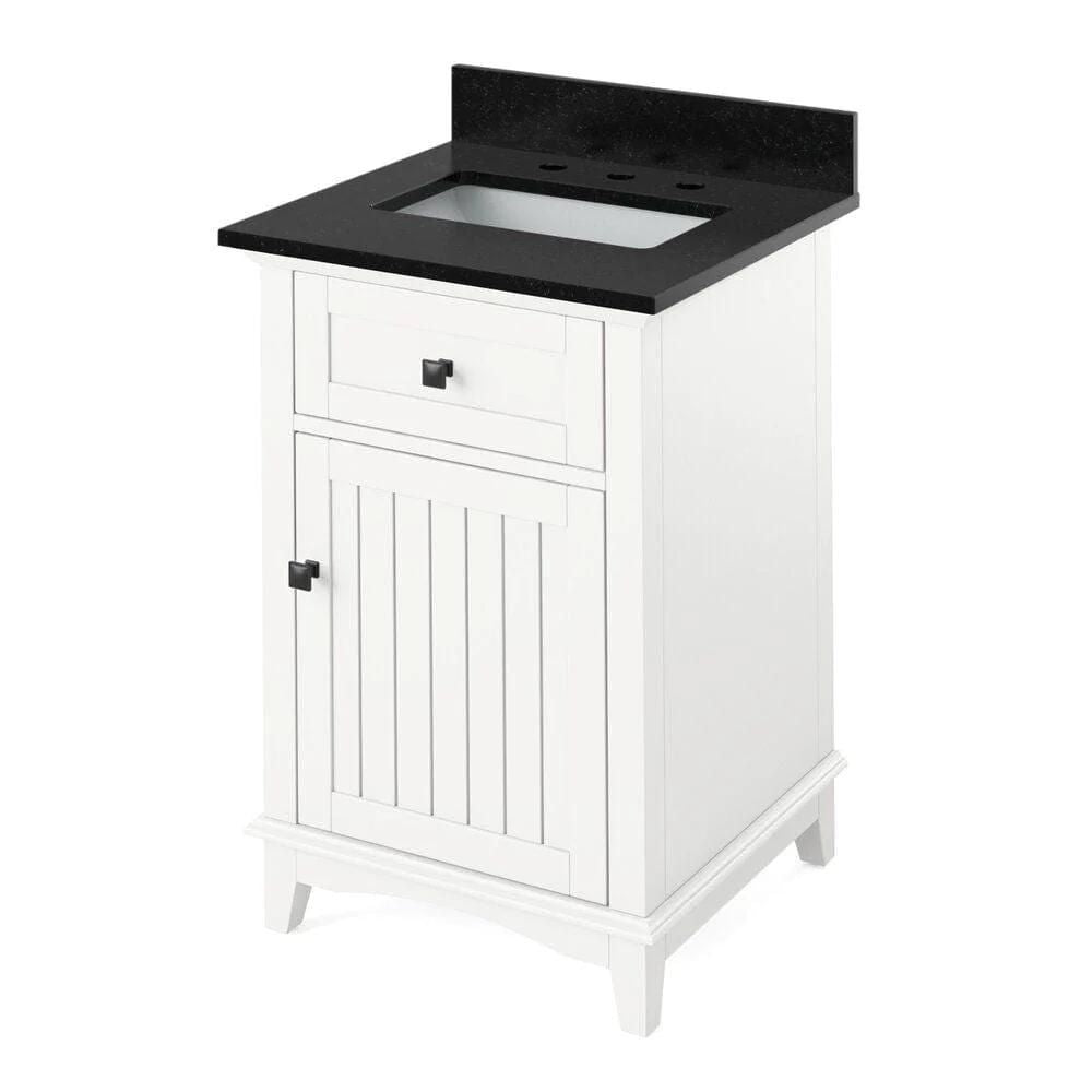Details of the 24" White Savino Vanity, Black Granite Vanity Top, undermount rectangle bowl by Jeffrey Alexander | VKITSAV24WHBGR