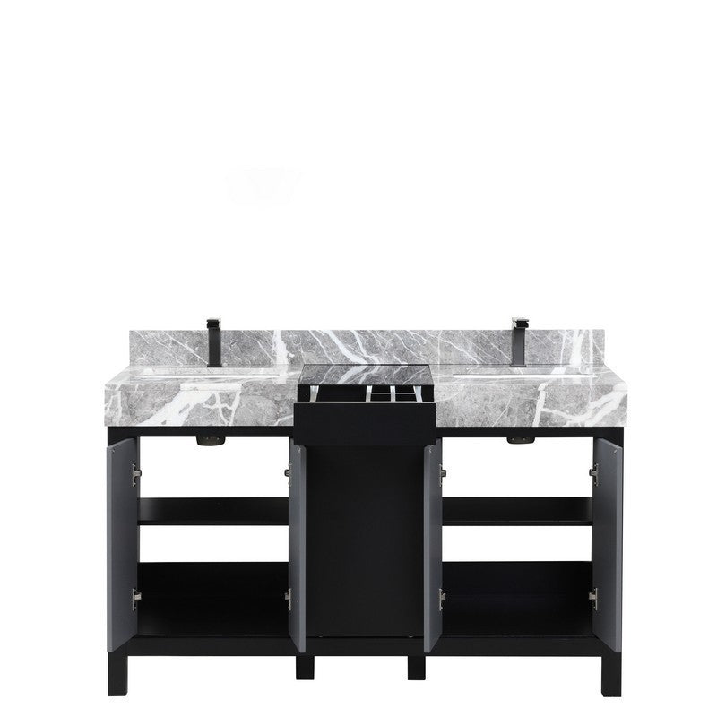 Zilara 55" Black and Grey Double Vanity, Marble Top, and Balzani Gun Metal Faucet Set | LZ342255SLISFBG