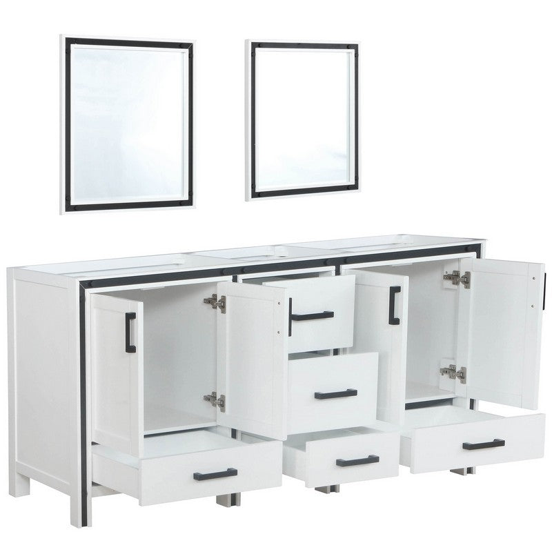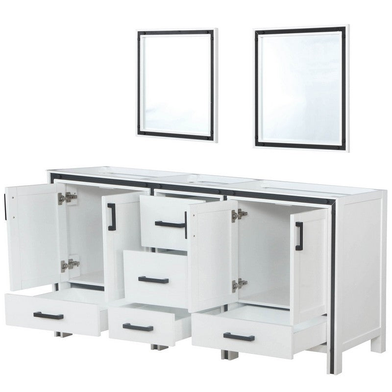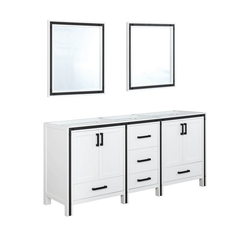 Ziva 72" White Double Vanity, no Top and 30" Mirrors | LZV352272SA00M30