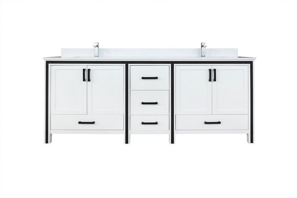 Ziva 84" White Double Vanity, Cultured Marble Top, White Square Sink and no Mirror | LZV352284SAJS000