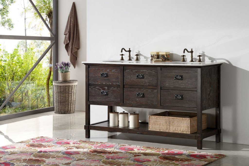 60" WOOD SINK VANITY WITH MARBLE TOP-NO FAUCET