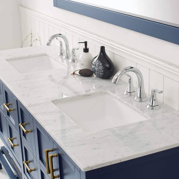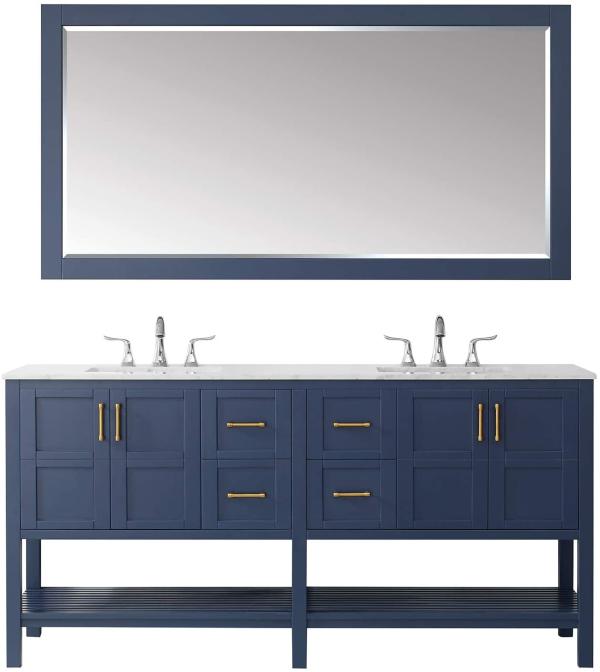Florence 72" Vanity in Royal Blue with Carrara White Marble Countertop With Mirror by Vinnova