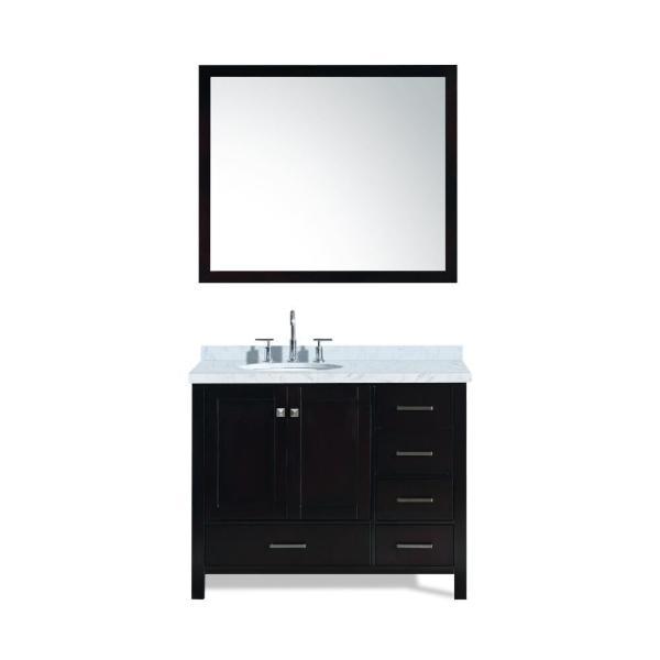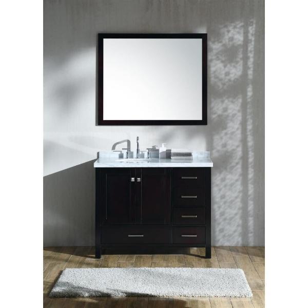 Cambridge 43 Inch Espresso Modern Left Offset Oval Single Sink Bathroom Vanity With Free Mirror A043S-L-ESP By Ariel