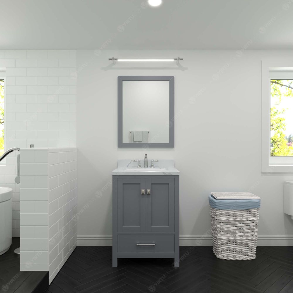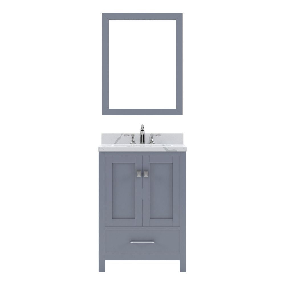 - Includes - 24" Gray Cabinet, Calacatta Quartz Countertop, 1 Square Undermount Sink, 1 Framed Mirror, 1 Brushed Nickel Faucet