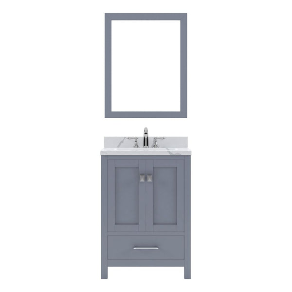 Details of the Virtu USA Caroline Avenue 24" Single Bath Vanity in Gray with Calacatta Quartz Top and Square Sink with Brushed Nickel Faucet with Matching Mirror | GS-50024-CCSQ-GR-001