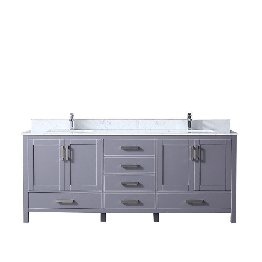 Jacques 80" Dark Grey Double Vanity | White Carrara Marble Top | White Square Sinks and no Mirror