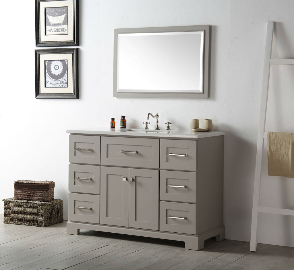 48" WOOD SINK VANITY WITH QUARTZ OP-NO FAUCET IN WARM GREY