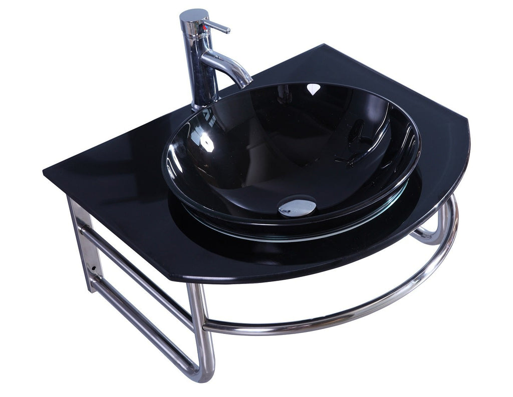 24" Black tempered glass and 1 pre-drill faucet hole
