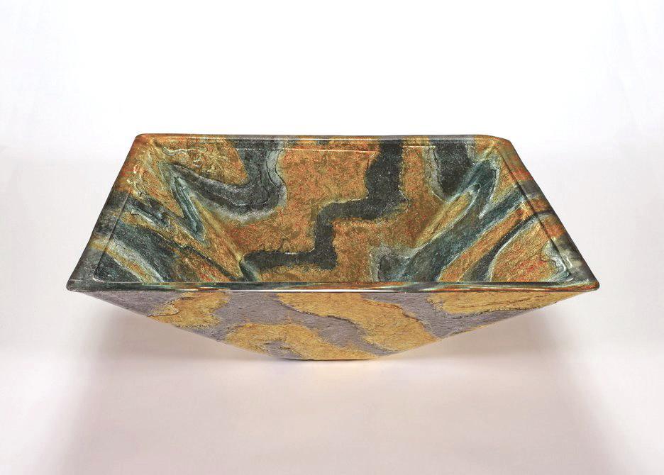 Legion ZA-148 Tempered Glass 1/2" Thick, 16.5" Diameter, 5.9" Height Matching Chrome Pop-Up Drain and Mounting Ring - Antique Gold and Silver