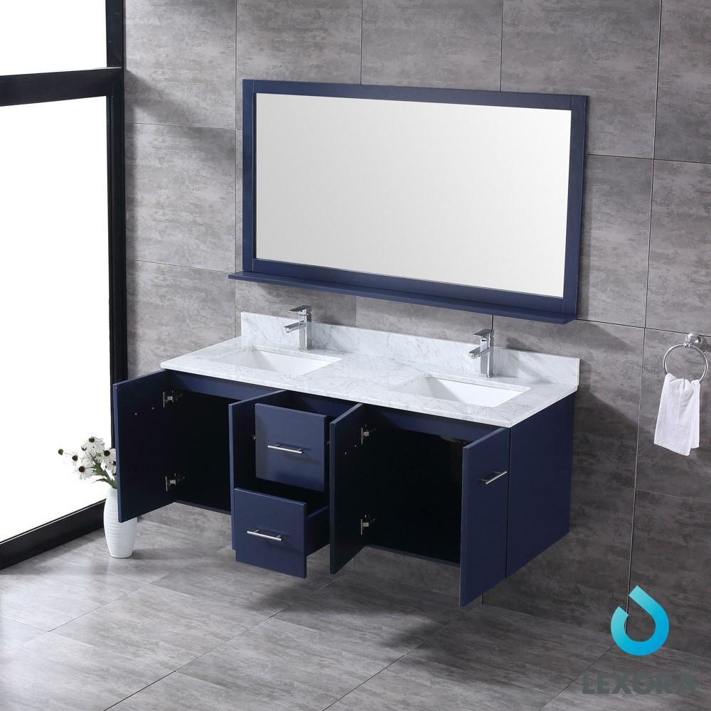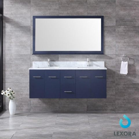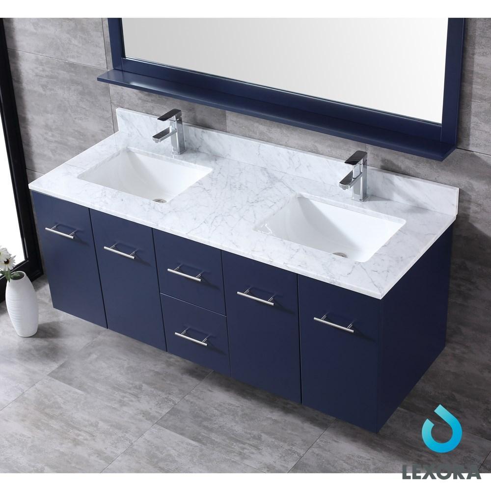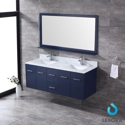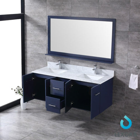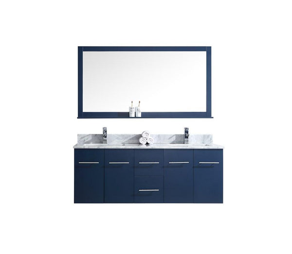 Amelie 60" Navy Blue Double Vanity | White Carrara Marble Top | White Square Sinks and 60" Mirror