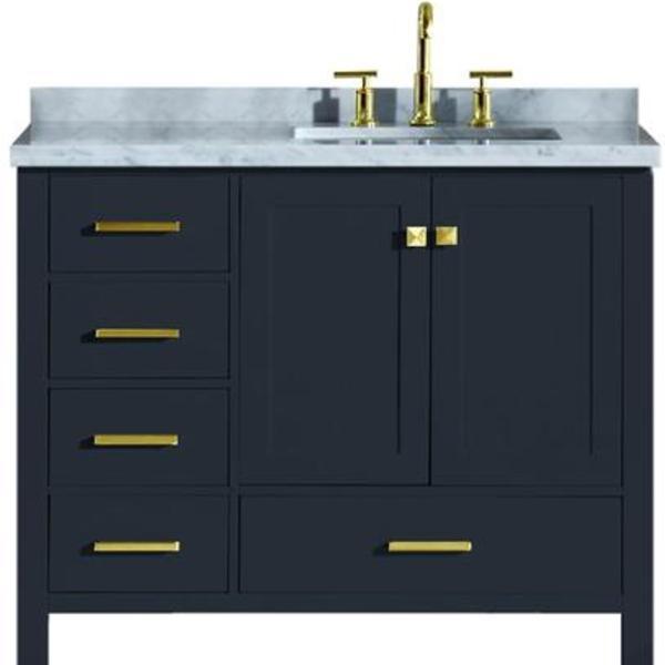 Cambridge 43 Inch Midnight Blue Modern Right Offset Single Rectangle Sink Bathroom Vanity Set A043S-R-CWR-MNB By Ariel