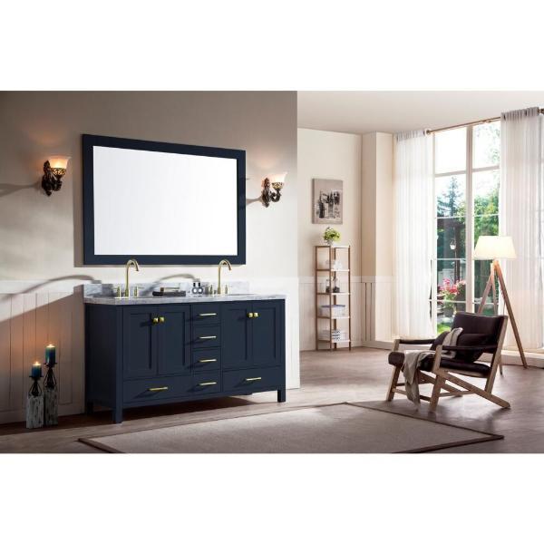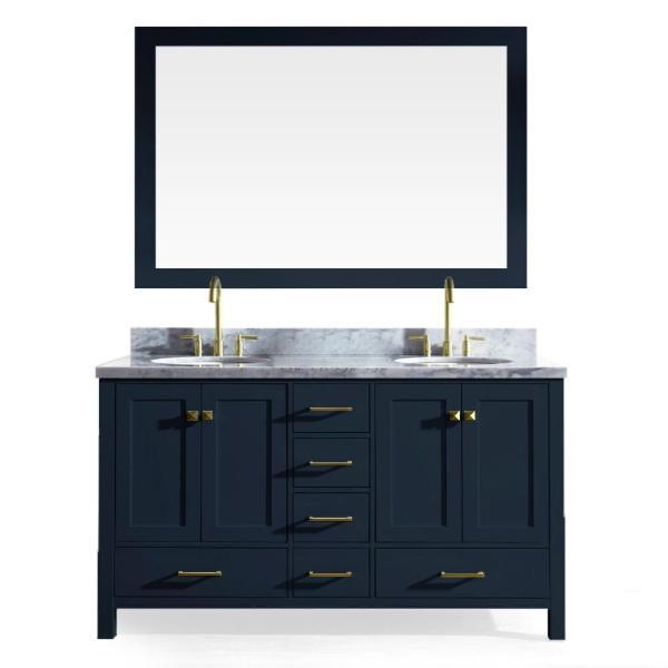 Cambridge 61 Inch Midnight Blue Modern Double Oval Sink Bathroom Vanity A061D-MNB By Ariel