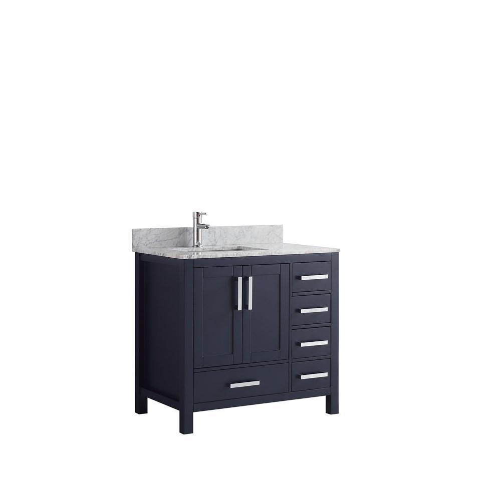 Jacques 36" Navy Blue Single Vanity | White Carrara Marble Top | White Square Sink and no Mirror - Left Version