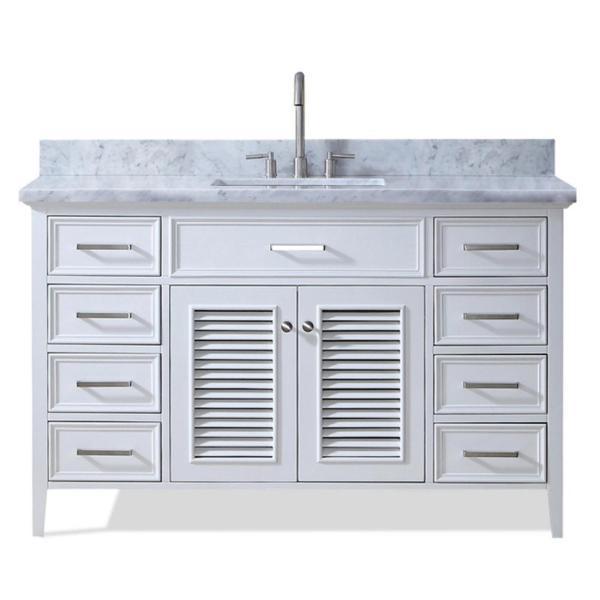 Kensington 55 Inch White Traditional Single Sink Bathroom Vanity D055S-WHT By Ariel