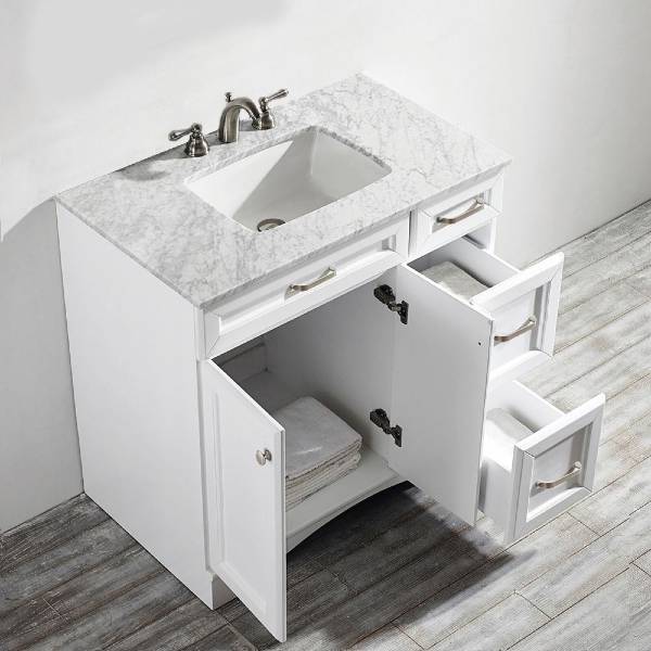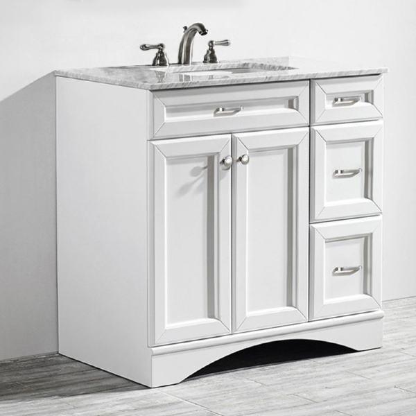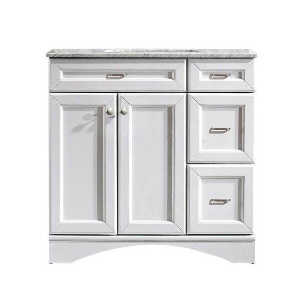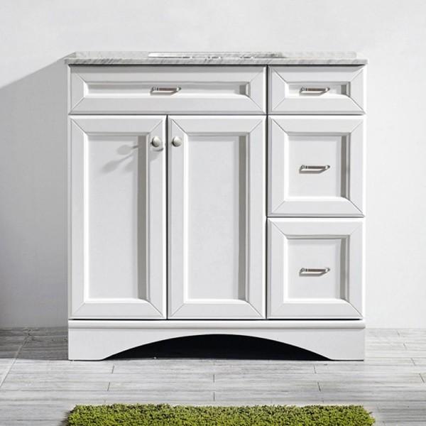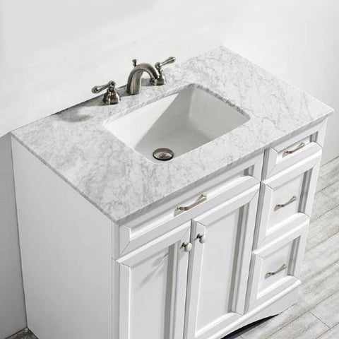 Vinnova Naples 36" Transitional White Vanity w/ Carrara White Marble Countertop