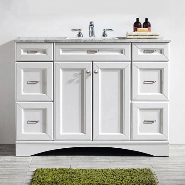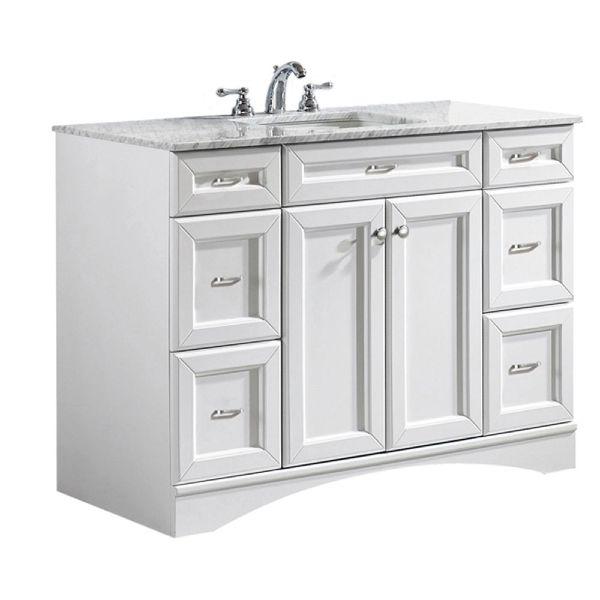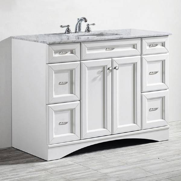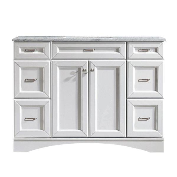 Vinnova Naples 48" Transitional White Vanity w/ Carrara White Marble Countertop