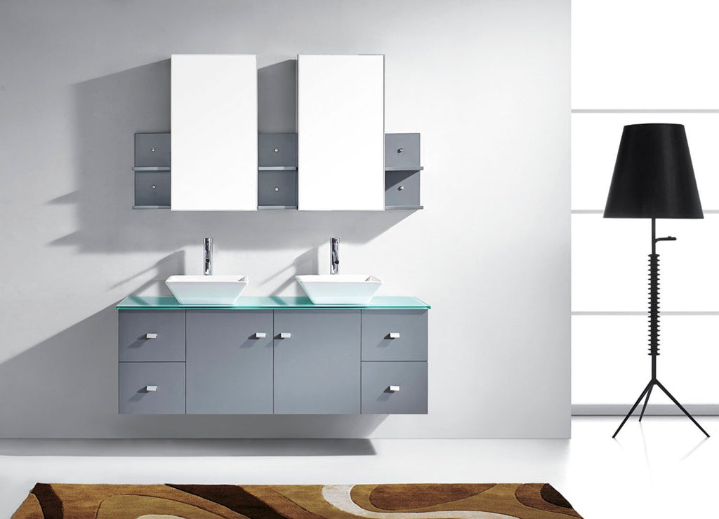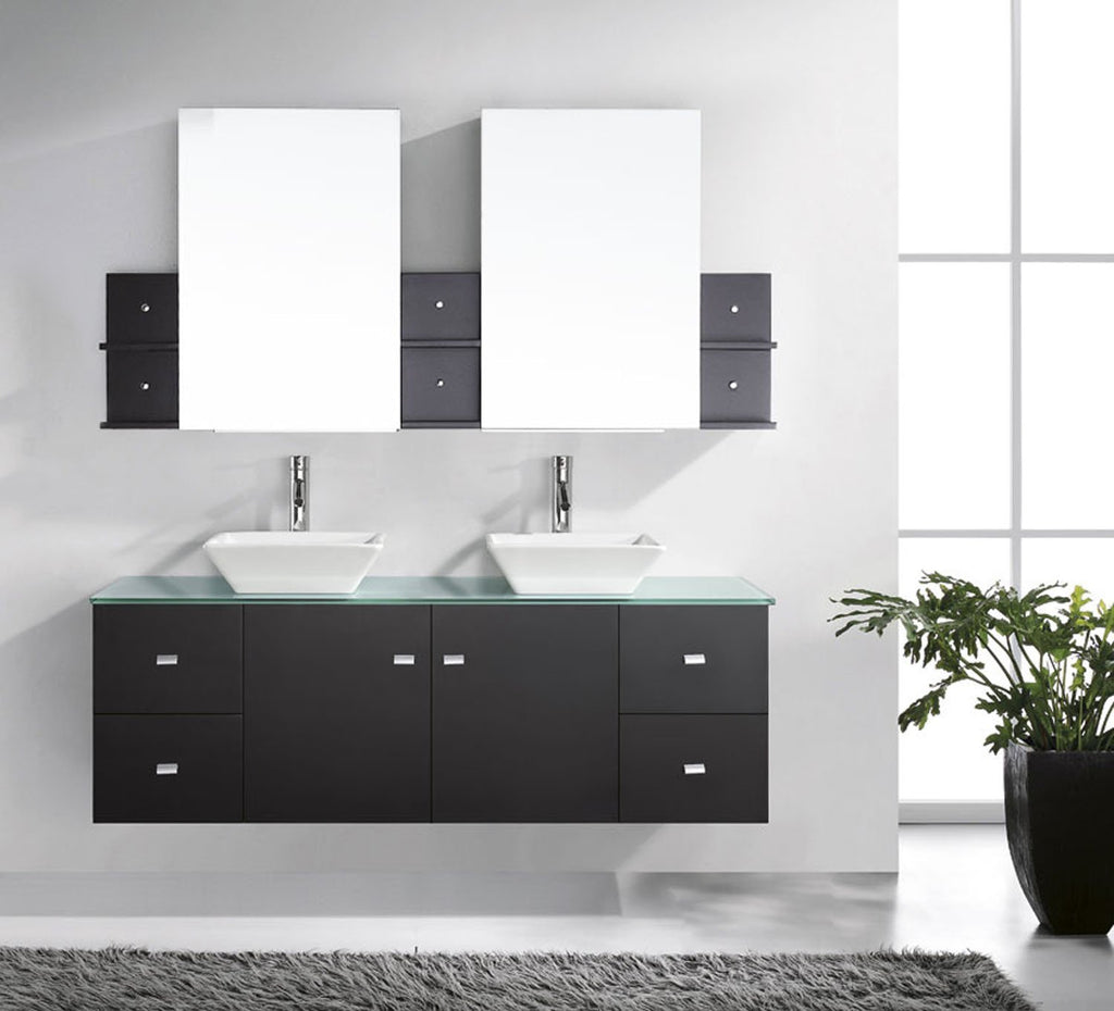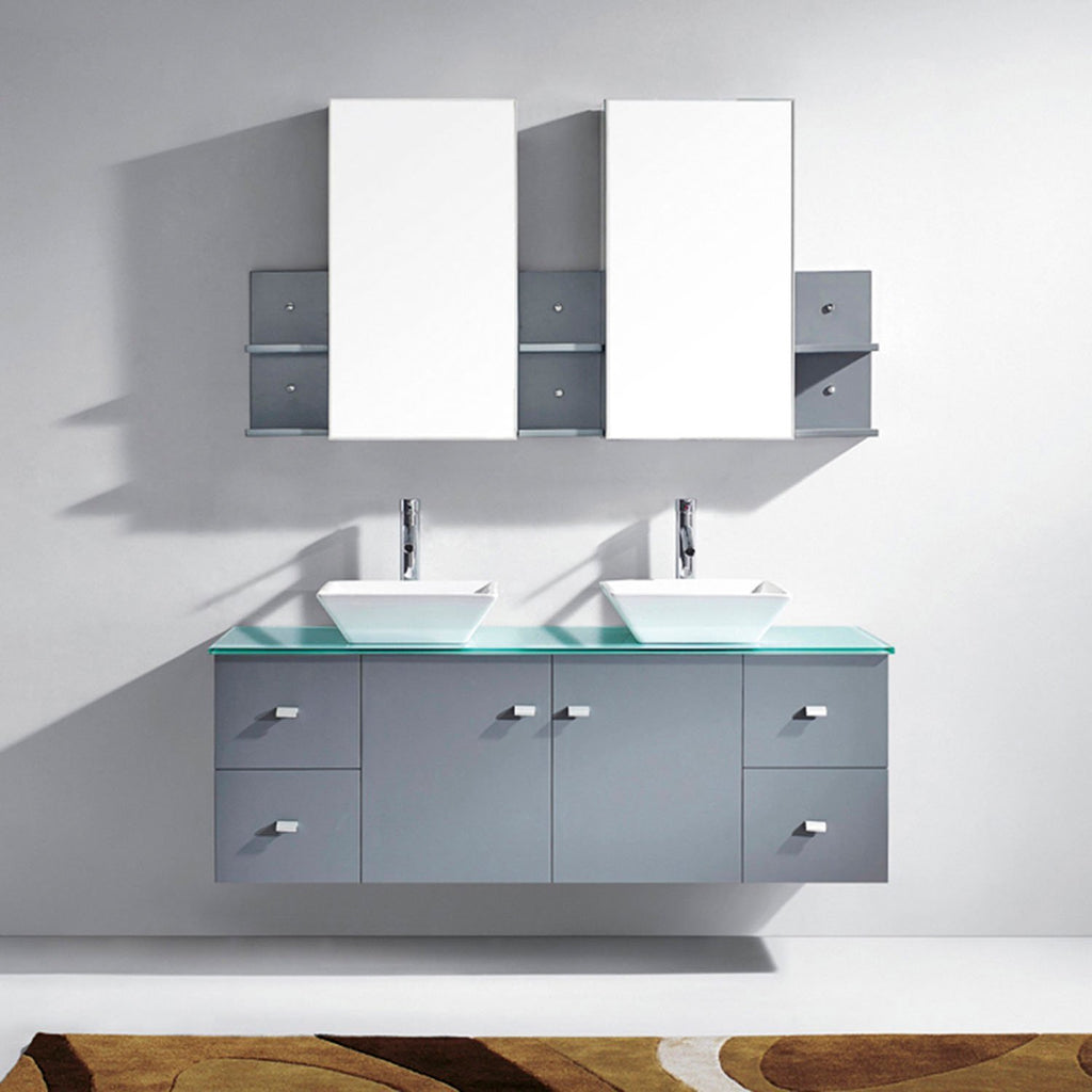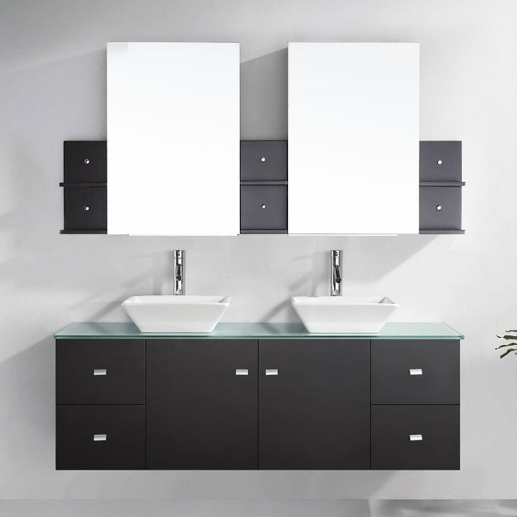 The Clarissa is truly a magnificent vanity, uniquely designed with the latest modern bathroom style. It is constructed from high quality solid oak wood and finished with Espresso color. The Clarissa vanity features the options of white artificial stone or tempered glass countertop. Beautiful ceramic sinks triumph and further enhance the design. The Clarissa offers significant storage including medicine mirror cabinets with wall shelves. Better yet, with this vanity set there is included eco-friendly and lifetime warranty faucets. This Clarissa vanity set will amplify any bathroom design. Virtu USA has taken the initiative in changing the vanity industry by adding soft closing doors and drawers to their entire product line. The premium soft-closing hardware not only increases the safety of the vanity, but also its lifetime reliability. Available color Espresso, Grey, White. Glass and Stone top.