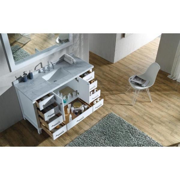 Cambridge 55 Inch White Modern Rectangle Sink Bathroom Vanity A055S-CWR-WHT By Ariel