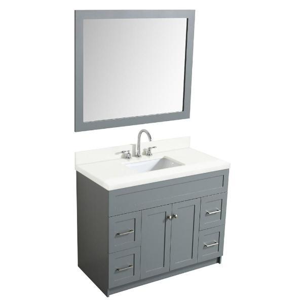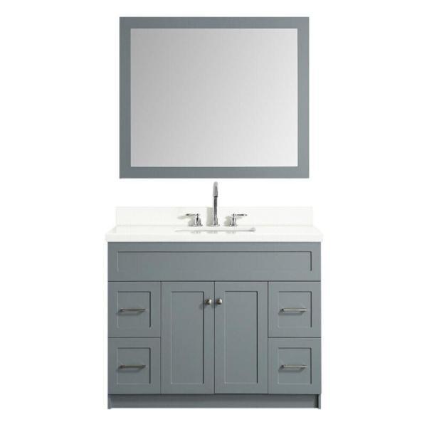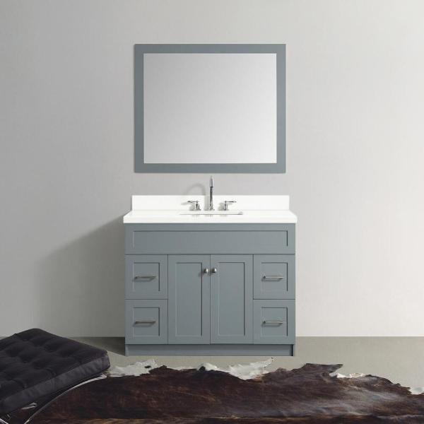 Hamlet 43 Inch Grey Modern Single Sink Bathroom Vanity Set With White Quartz Counertop F043S-WQ-GRY By Ariel