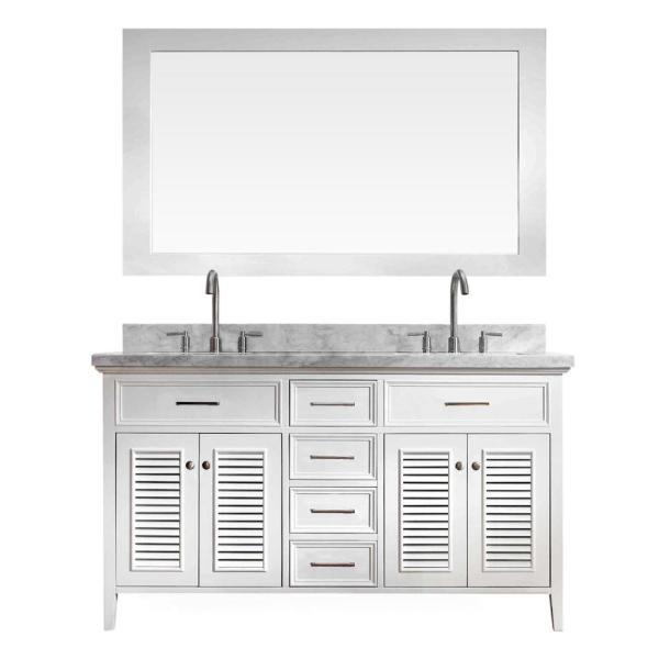 Kensington 61 Inch White Traditional Double Sink Bathroom Vanity D061D-WHT By Ariel