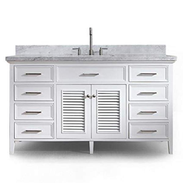 Add a touch of elegance to your traditional bathroom with a beautiful Kensington bathroom vanity from ARIEL. The Kensington series features solid wood cabinets with matching framed mirrors and white carrara marble countertops. These vanities will be sure to add style and storage to your bathroom decor.
