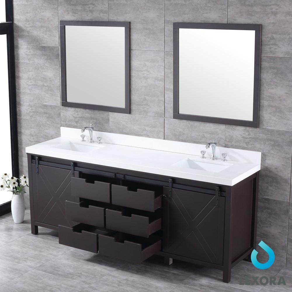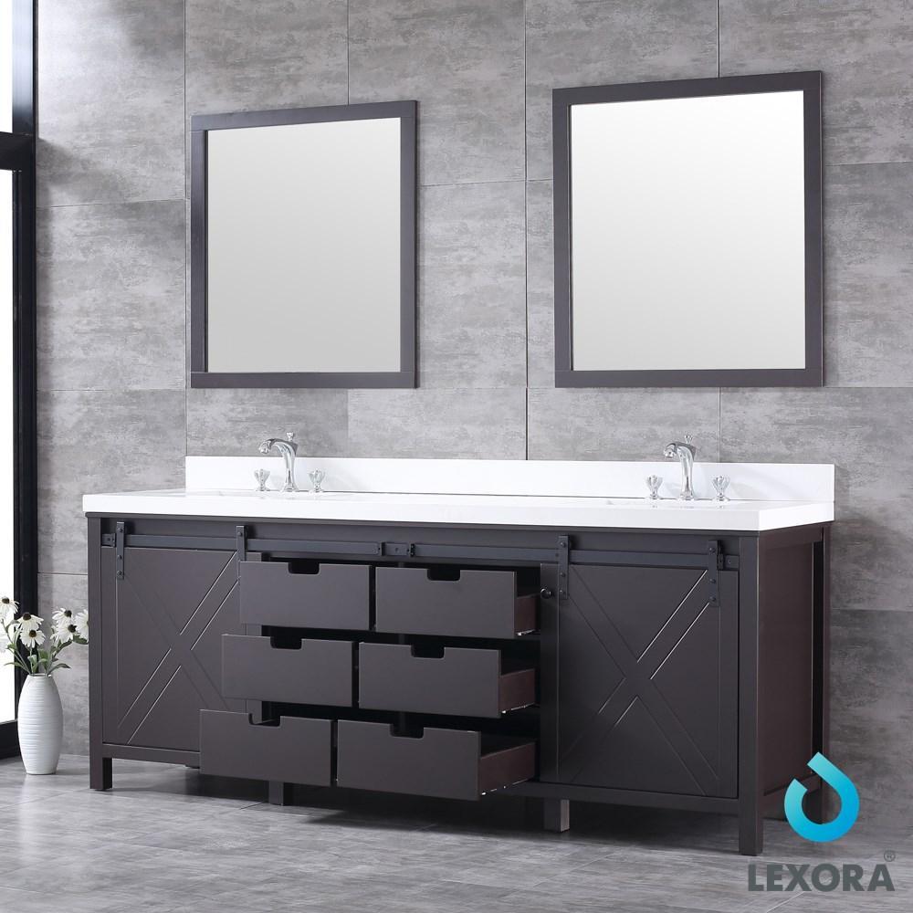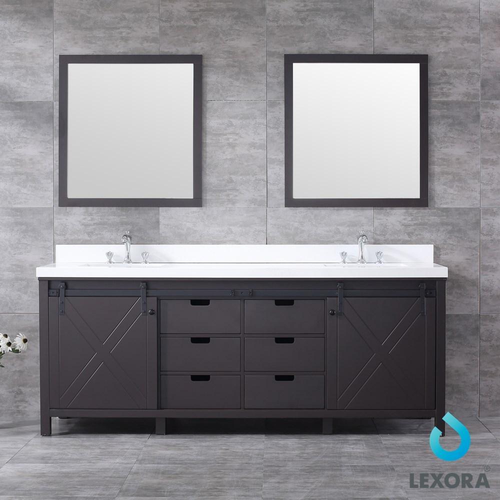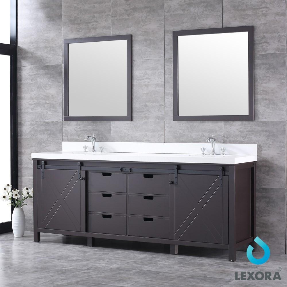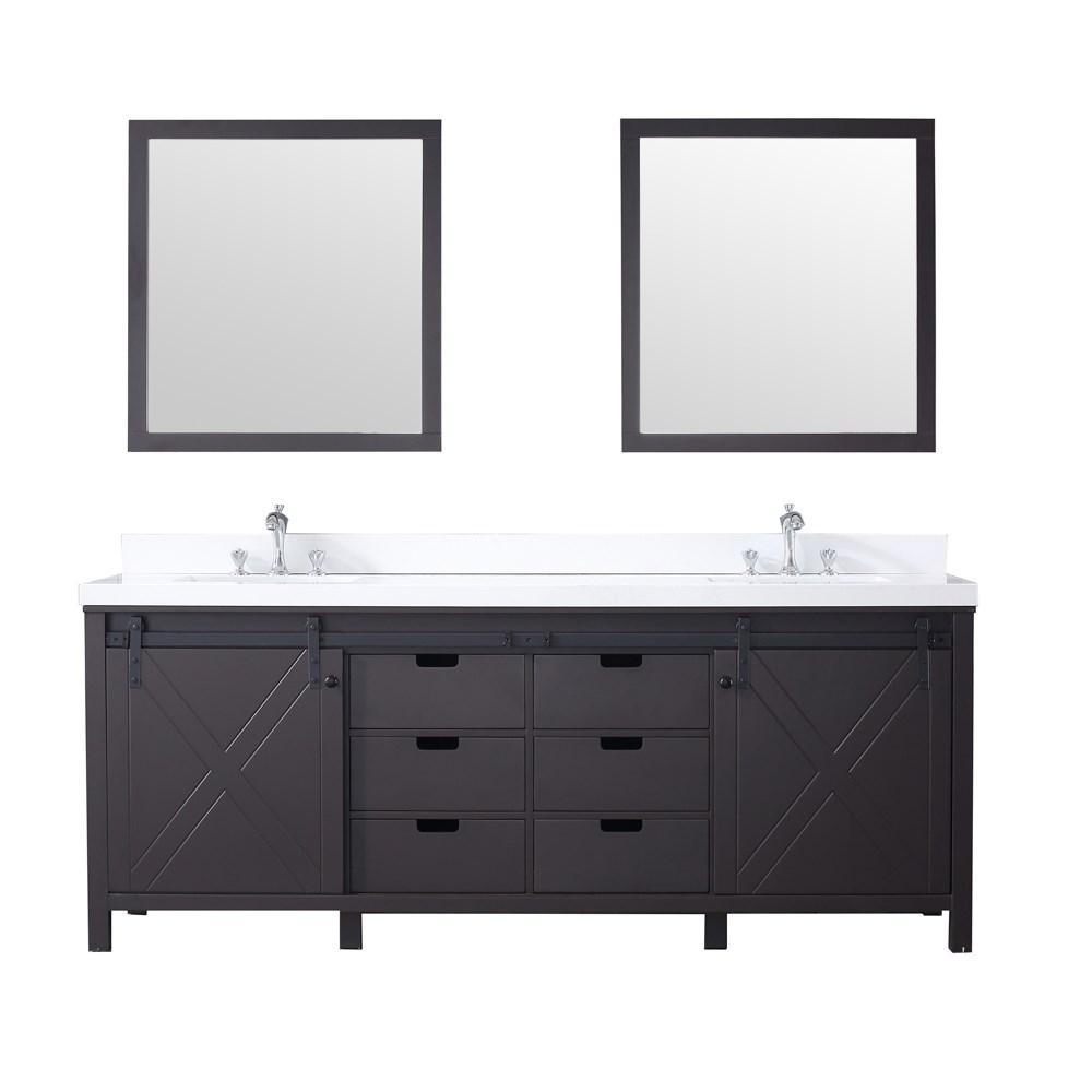 Marsyas 84" Brown Double Vanity | White Quartz Top | White Square Sinks and 34" Mirrors