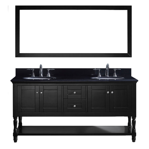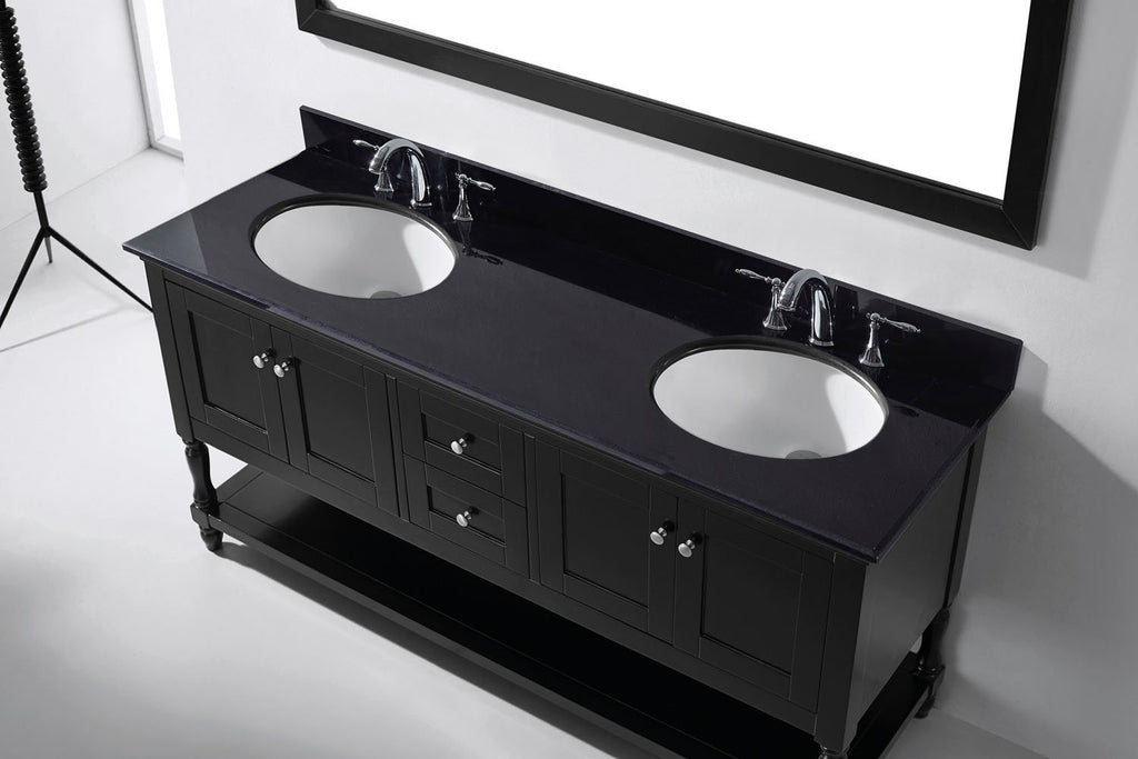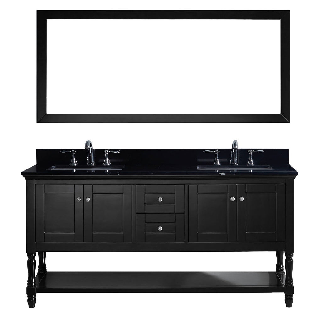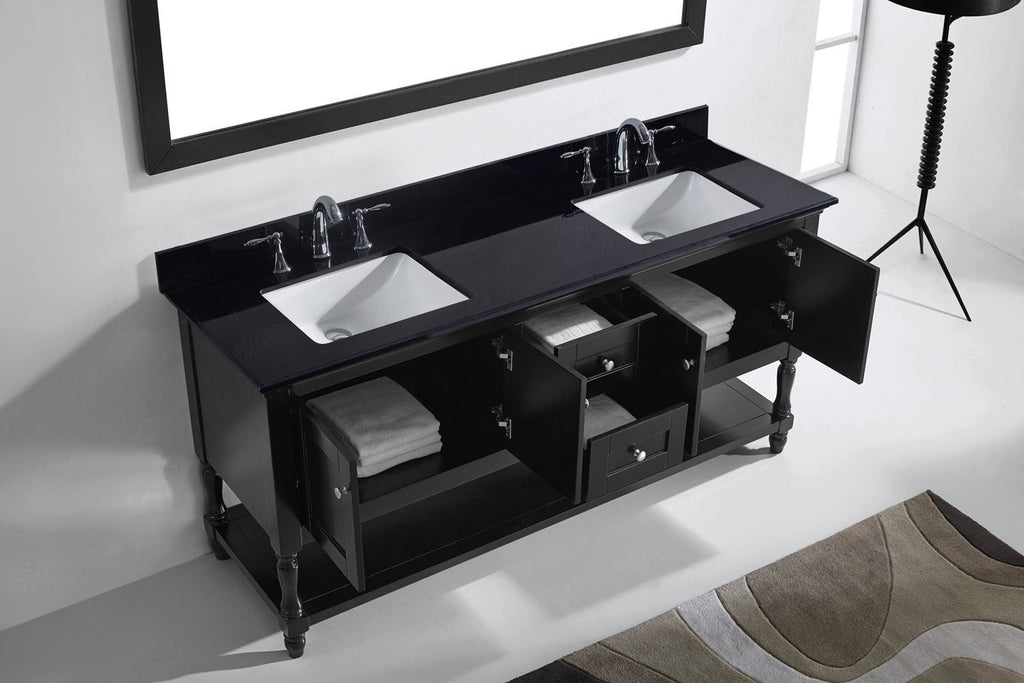 Details of the Virtu USA Julianna 72" Double Bathroom Vanity with Black Galaxy Granite Top