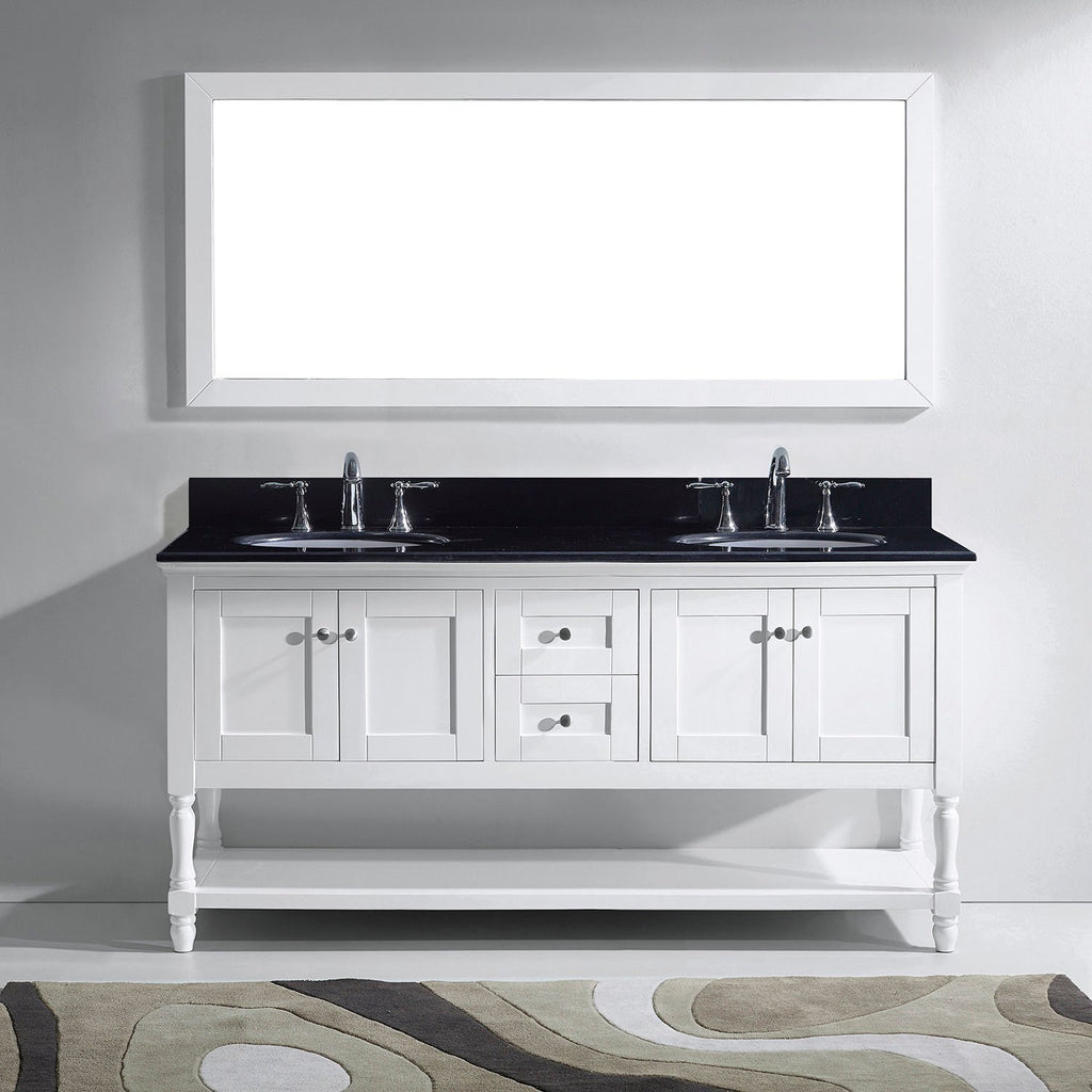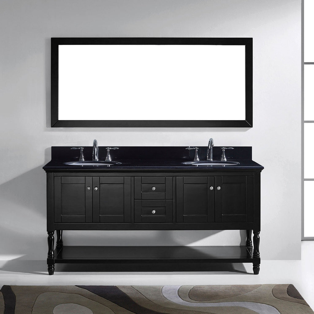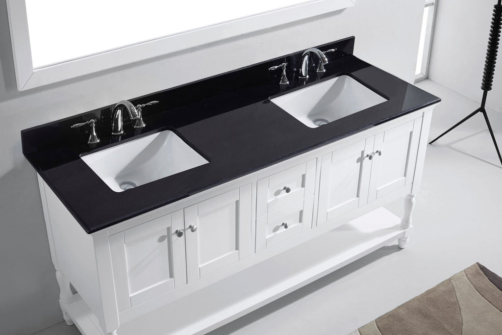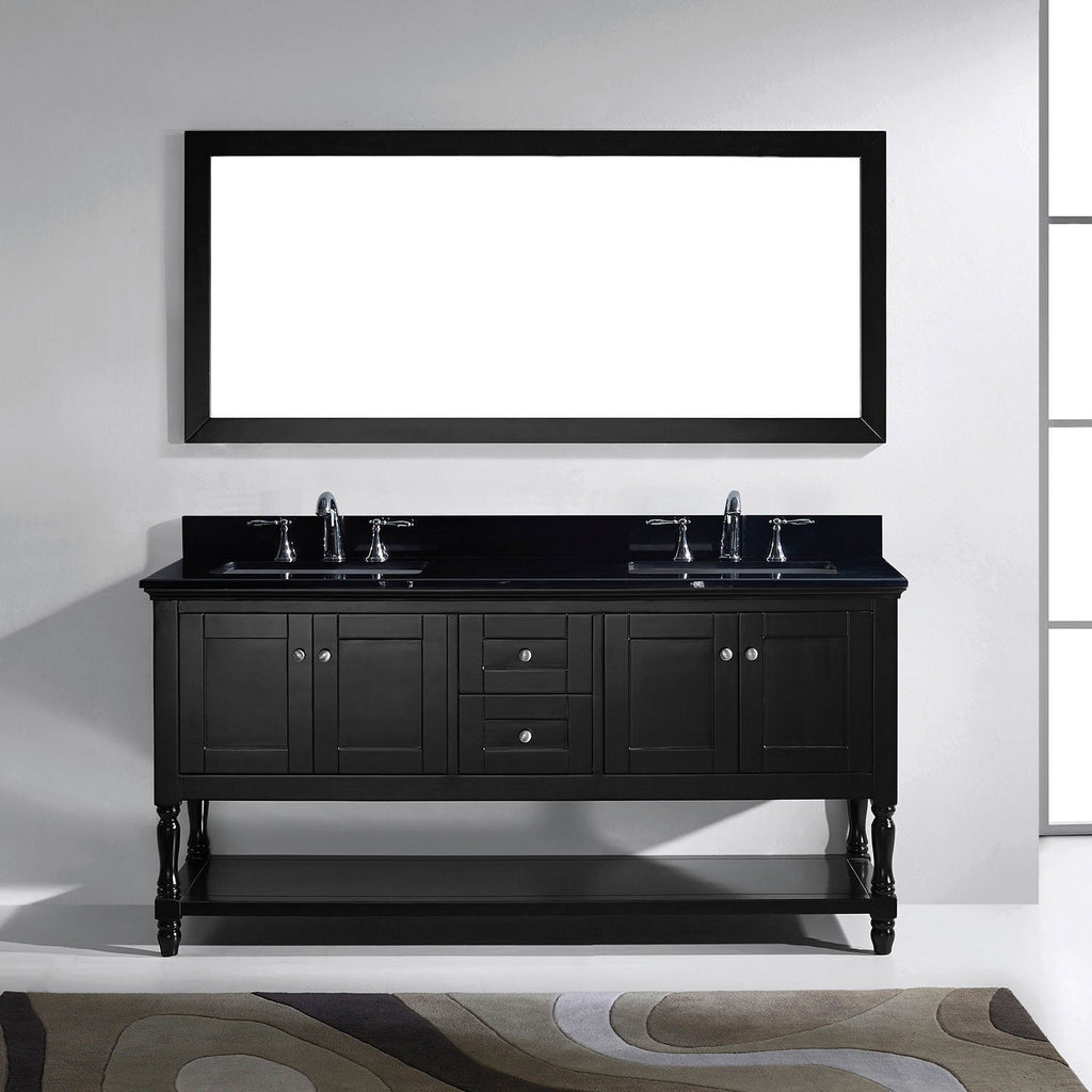 Details of the Virtu USA Julianna 72" Double Bathroom Vanity with Black Galaxy Granite Top