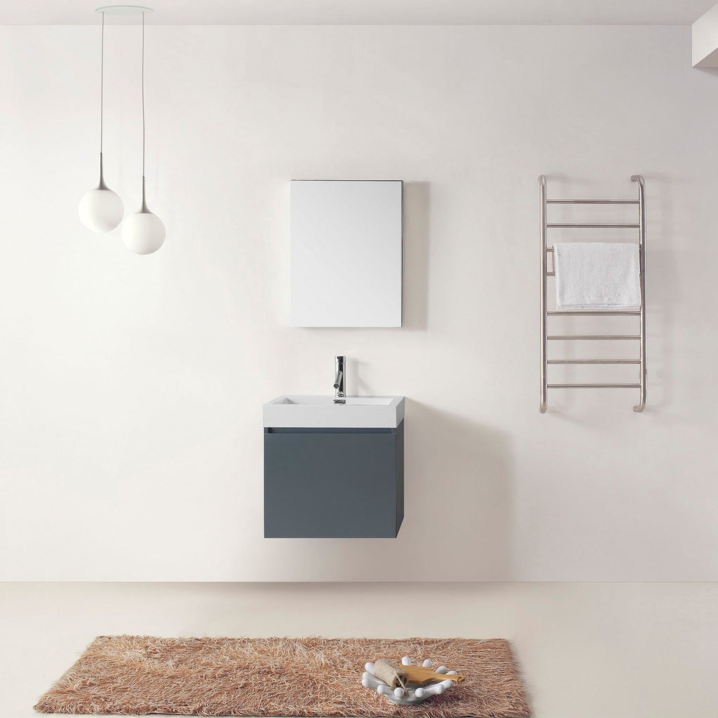 This magnificent, ultra-modern Zuri vanity is the perfect example of quality. Take notice in the magnificent finish as well as the high gloss, polymarble basin. If storage is what you're looking for, this vanity contains two drawers on Bellucci soft closing slides that will be sure to hold all of your bathroom essentials. Featuring both design, as well as practicality, the decision to upgrade to this vanity will always be an easy one. Virtu USA has taken the initiative in changing the vanity industry by adding soft closing doors and drawers to their entire product line. The premium soft-closing hardware not only increases the safety of the vanity, but also its lifetime reliability. Available color Grey, Gloss White, Plum, Wenge.