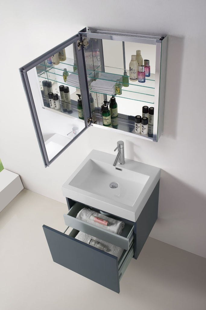 Details of the Virtu USA Zuri 24" Single Bathroom Vanity with White Polymarble Top