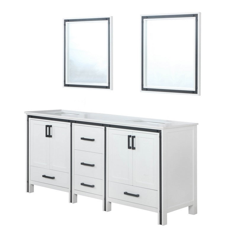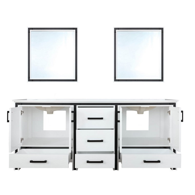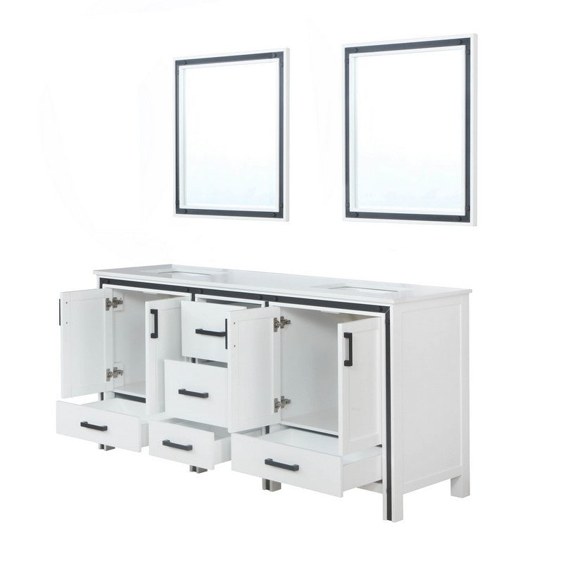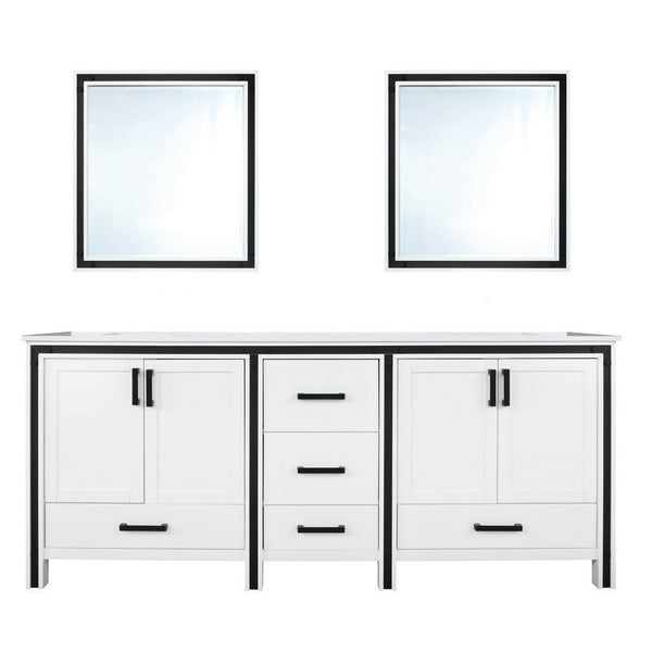 Ziva 72" White Double Vanity, Cultured Marble Top, White Square Sink and 30" Mirrors | LZV352272SAJSM30