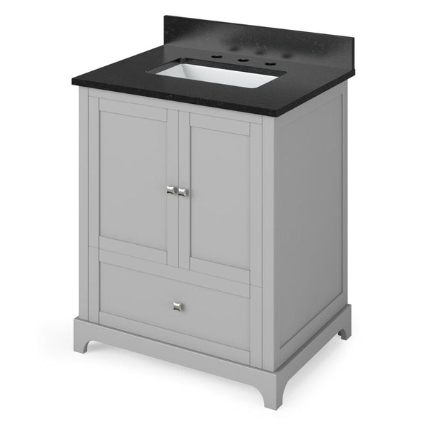 Details of the 30" Grey Addington Vanity, Black Granite Vanity Top, undermount rectangle bowl by Jeffrey Alexander | VKITADD30GRBGR