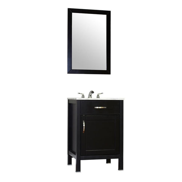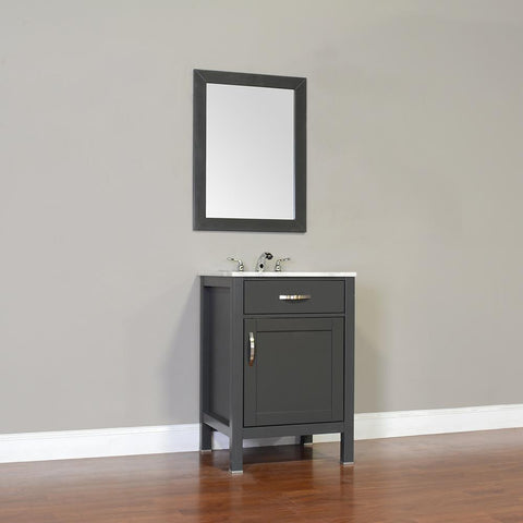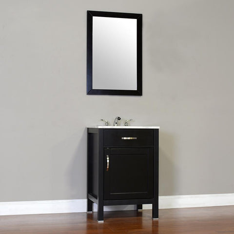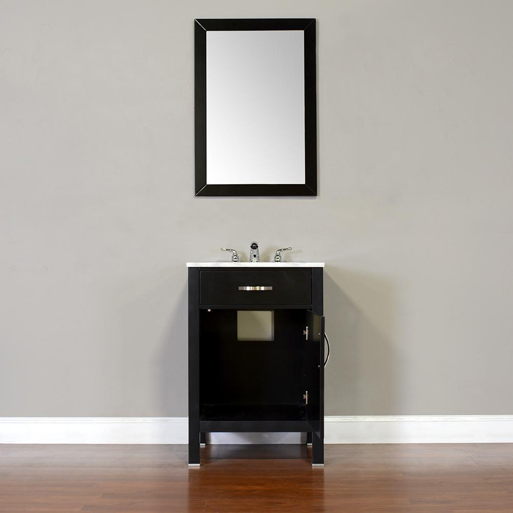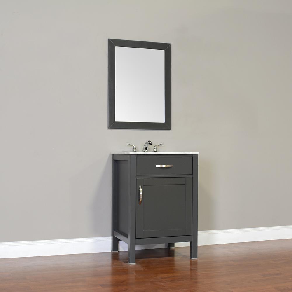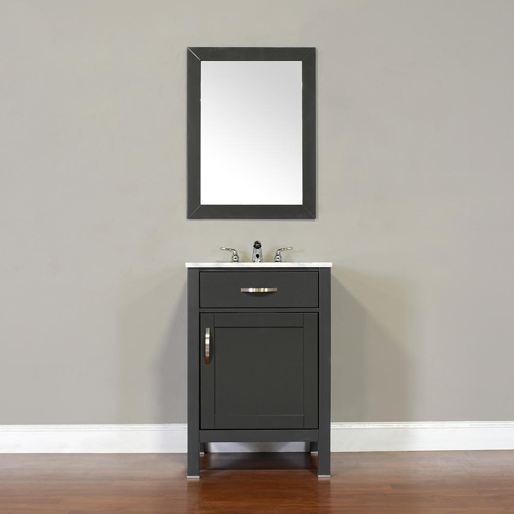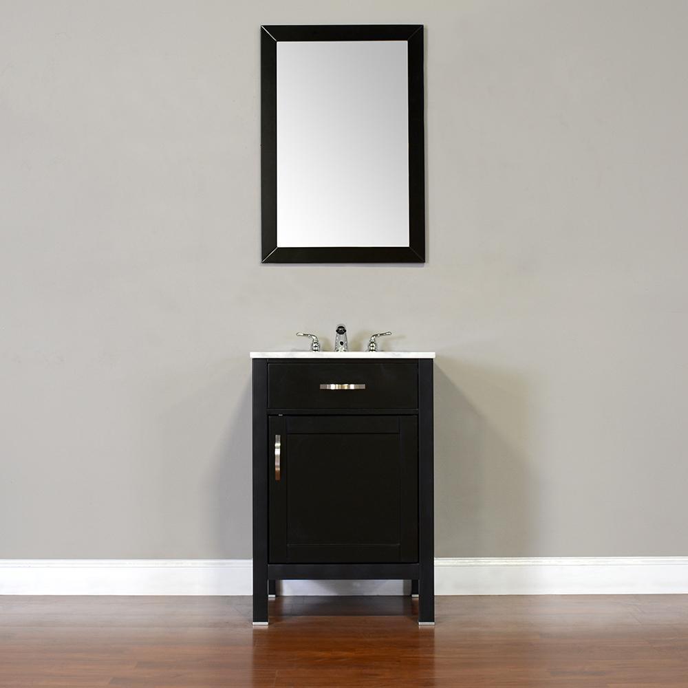 The 24" Single Sink Bathroom Vanity comes in espresso, gray and white which are Simple and spacious meshed well with this design. The smallest version of Hudson Collection offers White Marble or Beige Marble. Available color Black, White, Gray. Countertop Beige Marble Top/ Carrera White Marble top/ No Top. Mirror /No Mirror.