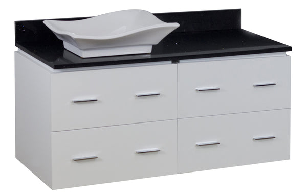 American Imaginations Xena Quartz 48-in. W Wall Mount White Vanity Set For Wall Mount Drilling Black Galaxy Top