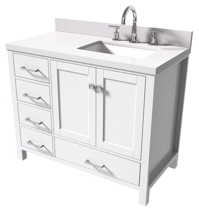 Details of the Cambridge White Transitional 43 Inch Right Offset Rectangle Sink Vanity w/ White Quartz Countertop by Ariel | A043SRWQRVOWHT
