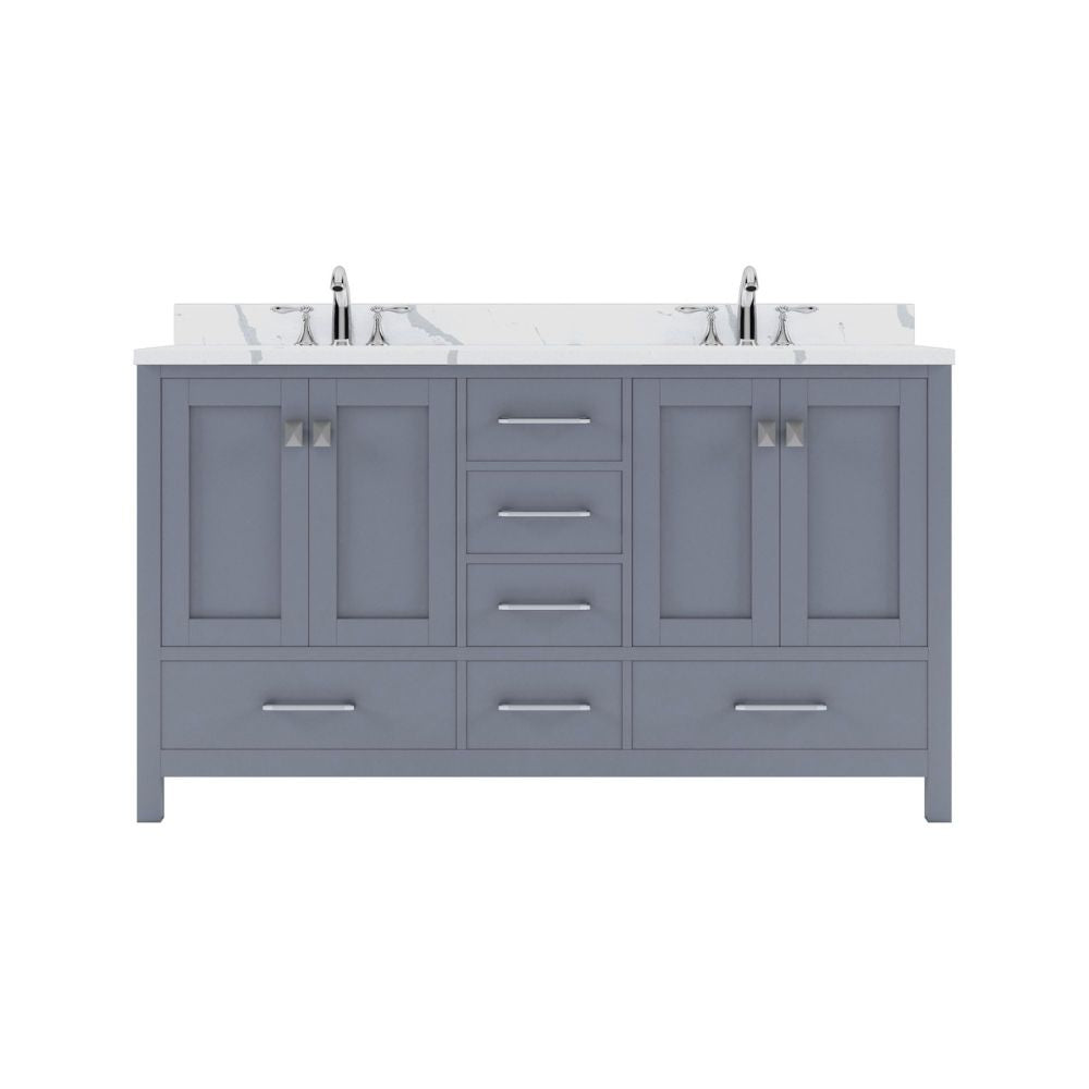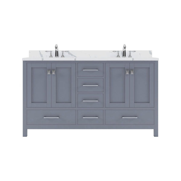 Details of the Virtu USA Caroline Avenue 60" Double Bath Vanity in Gray with Calacatta Quartz Top and Round Sinks | GD-50060-CCRO-GR-NM