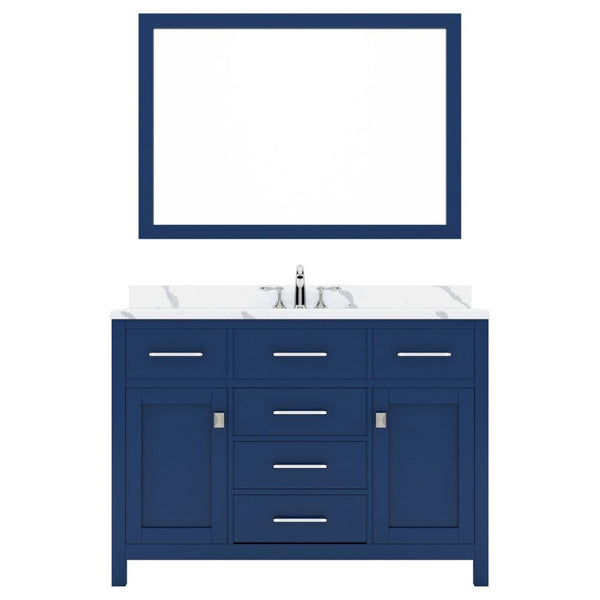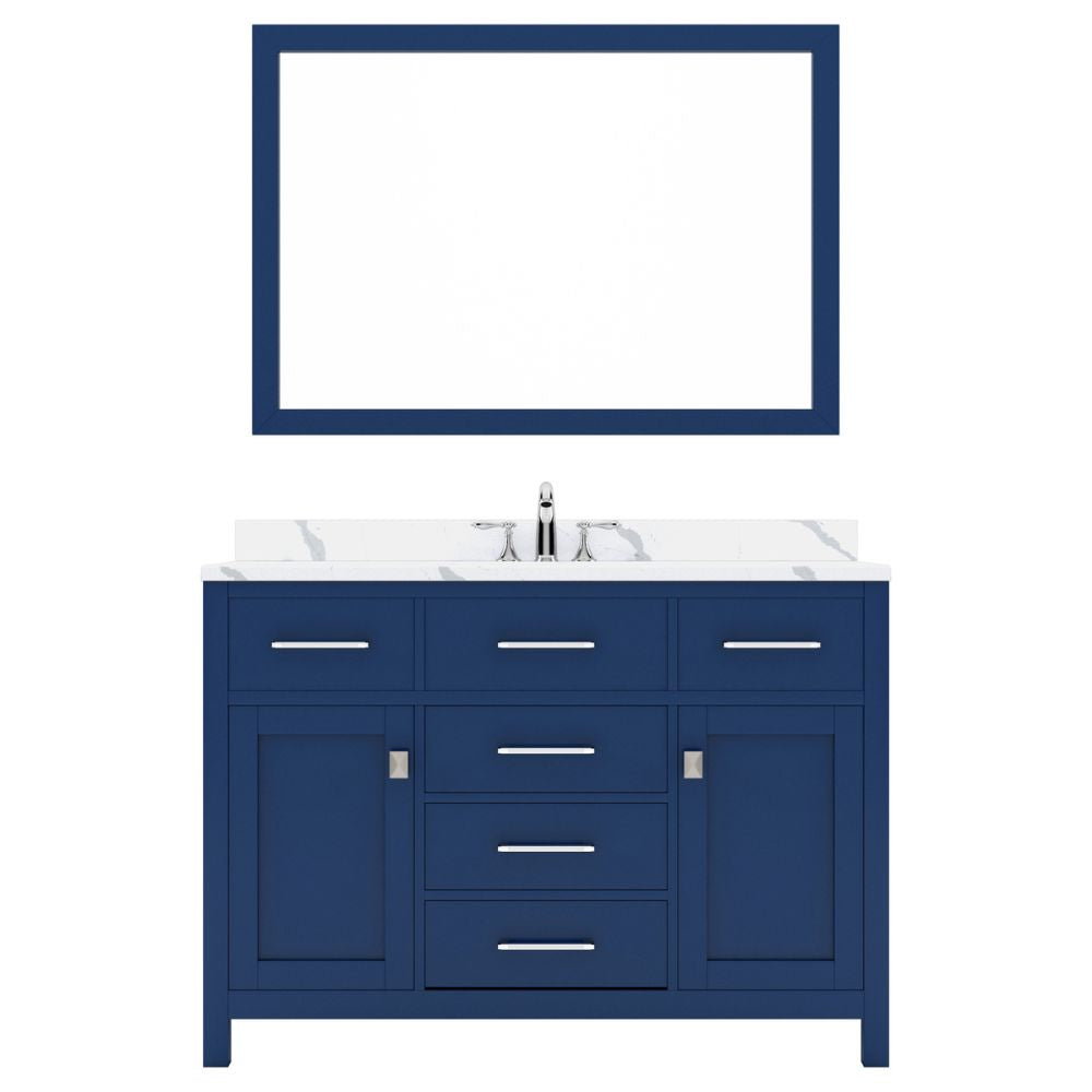 - Includes - 48" French Blue Cabinet, Calacatta Quartz Countertop, 1 Square Undermount Sink, 1 Framed Mirror, 1 Brushed Nickel Faucet