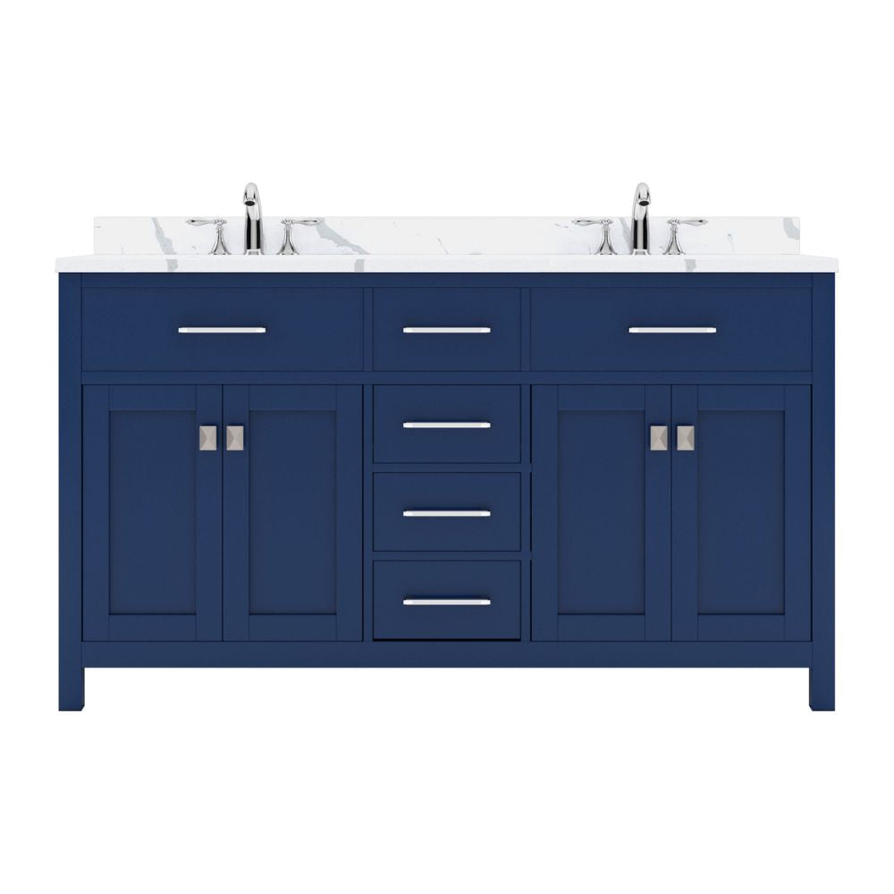 Details of the Virtu USA Caroline 60" Double Bath Vanity in French Blue with Calacatta Quartz Top and Round Sinks | MD-2060-CCRO-FB-NM