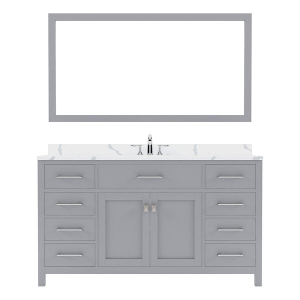 - Includes - 60" Gray Cabinet, Calacatta Quartz Countertop, 1 Round Undermount Sink, 1 Framed Mirror, 1 Brushed Nickel Faucet