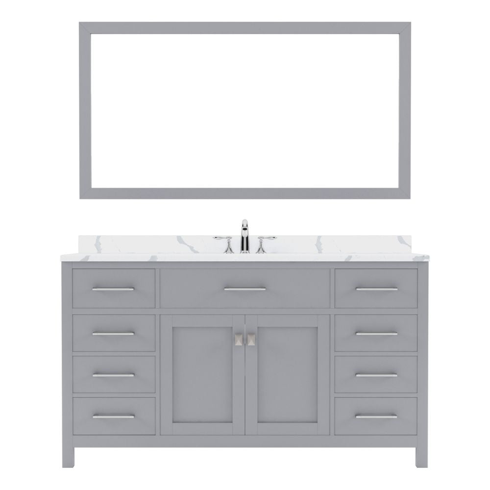 - Includes - 60" Gray Cabinet, Calacatta Quartz Countertop, 1 Round Undermount Sink, 1 Framed Mirror, 1 Polished Chrome Faucet