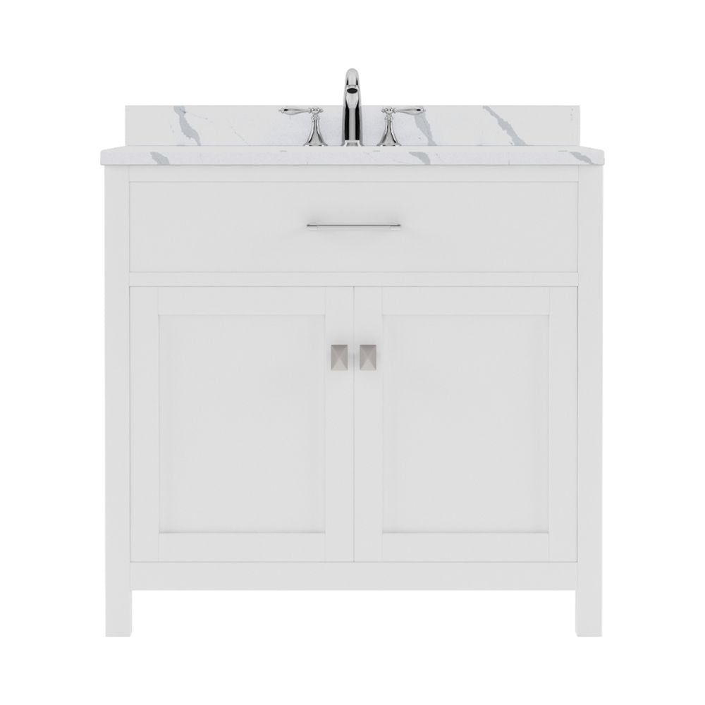 Caroline White 36" Single Square Sink Vanity with Calacatta Quartz Top | MS-2036-CCSQ-WH-NM