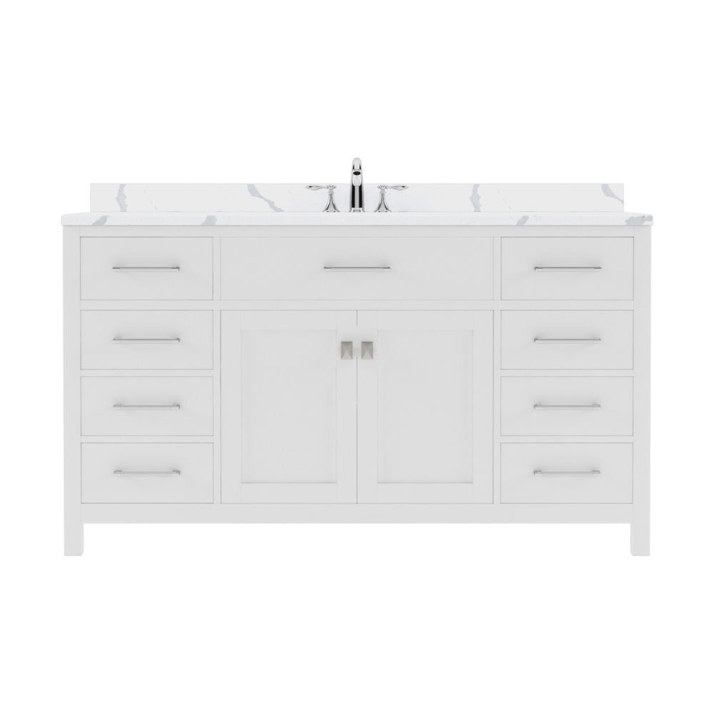 - Includes - 60" White Cabinet, Calacatta Quartz Countertop, 1 Round Undermount Sink
