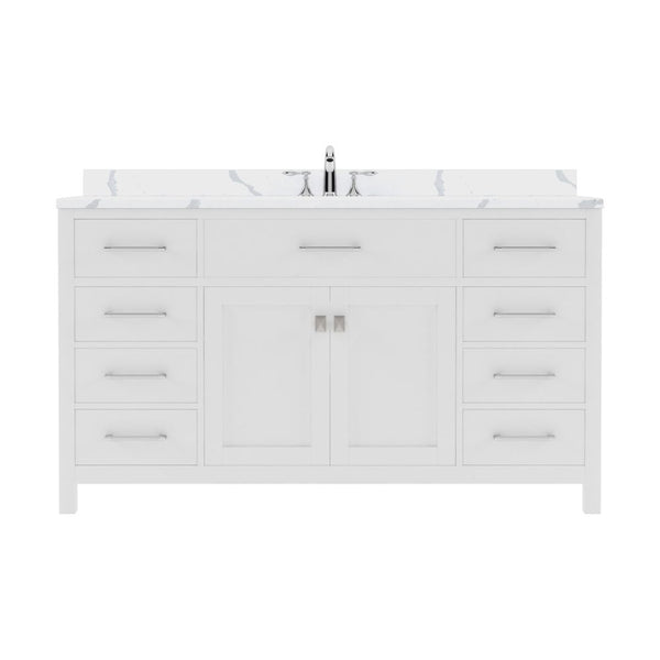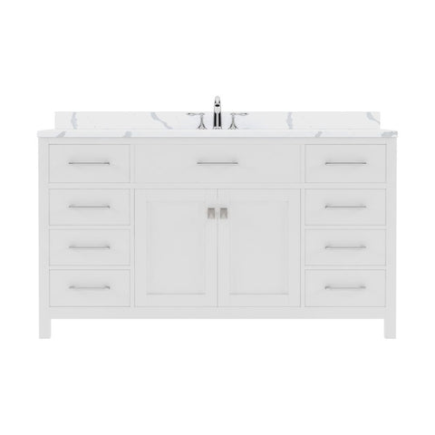 Details of the Caroline 60" Single Bath Vanity in White with Calacatta Quartz Top and Round Sink | MS-2060-CCRO-WH-NM