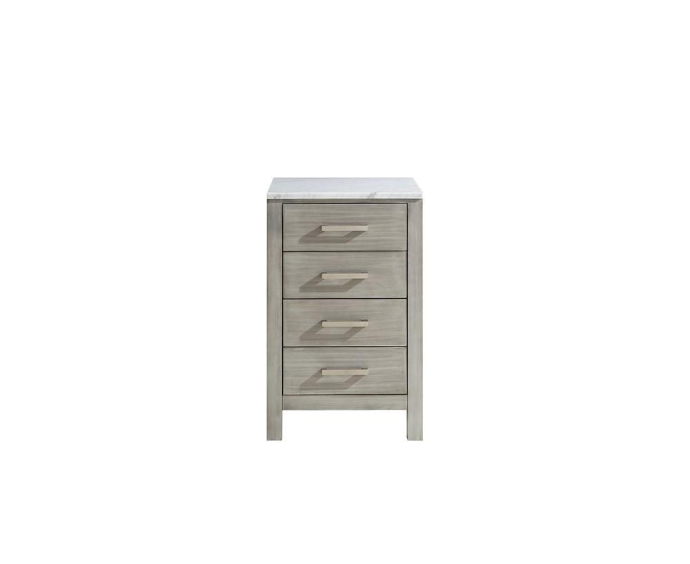 Jacques 20" Distressed Grey Side Cabinet | White Carrara Marble Top
