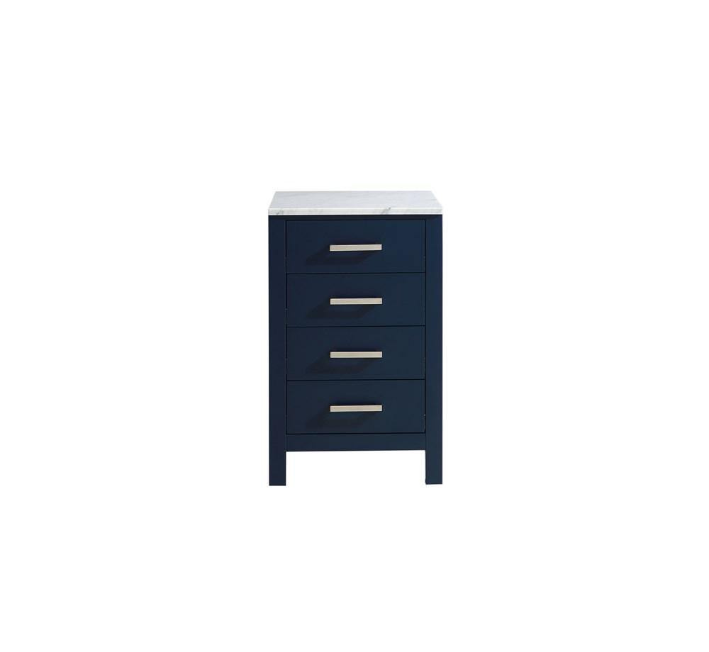 Jacques 20" Navy Blue Side Cabinet | White Carrara Marble Top
