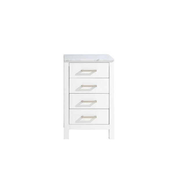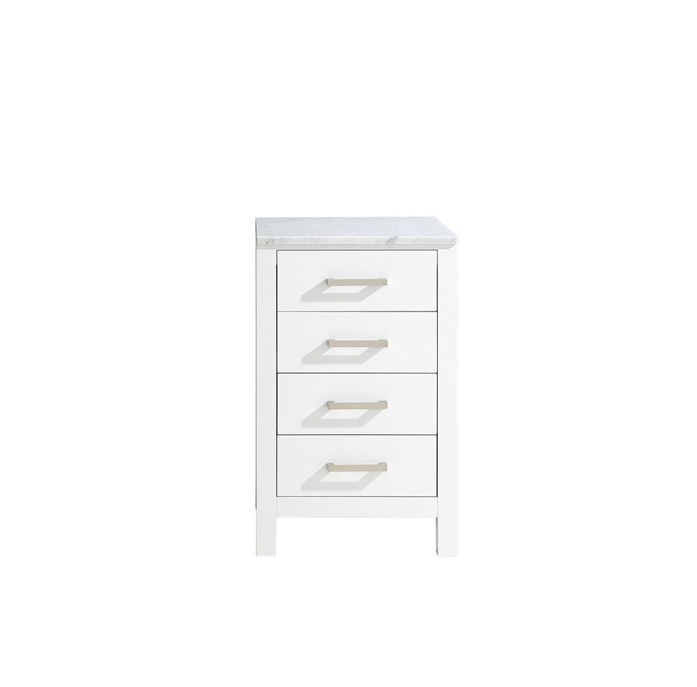 Jacques 20" White Side Cabinet | White Carrara Marble Top