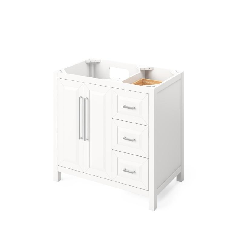 Jeffrey Alexander Cade Contemporary 36" White Single Undermount Sink Vanity With Quartz Top, Left Offset | VKITCAD36WHCQR