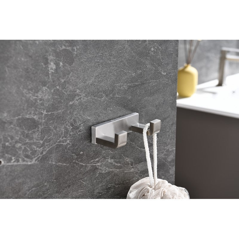 Lexora Bagno Bianca Stainless Steel Double Robe Hook - Brushed Nickel | LRH18152BN